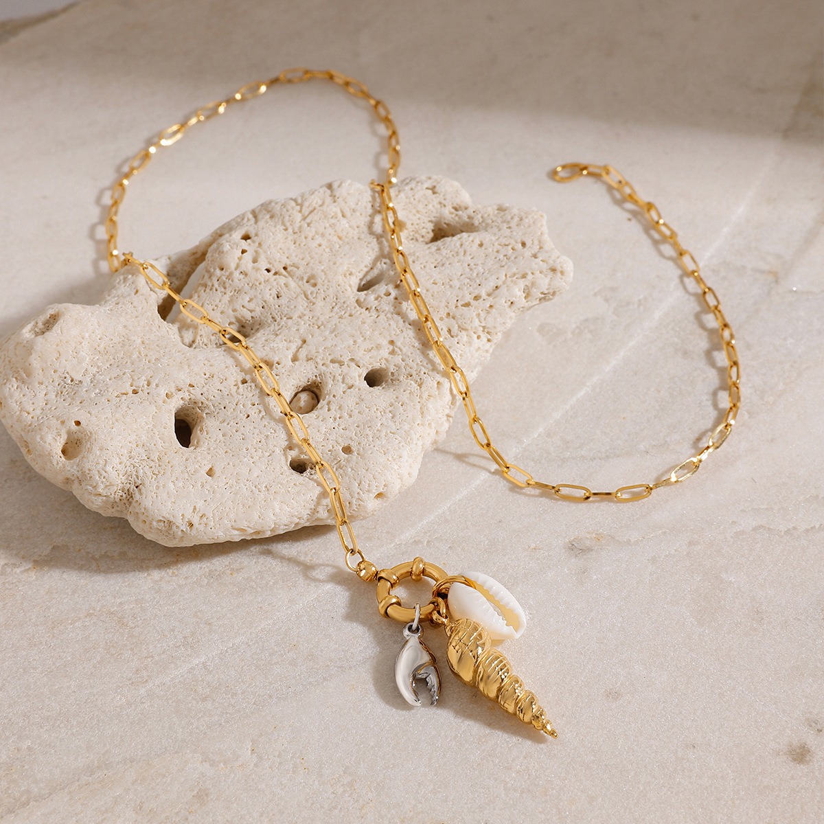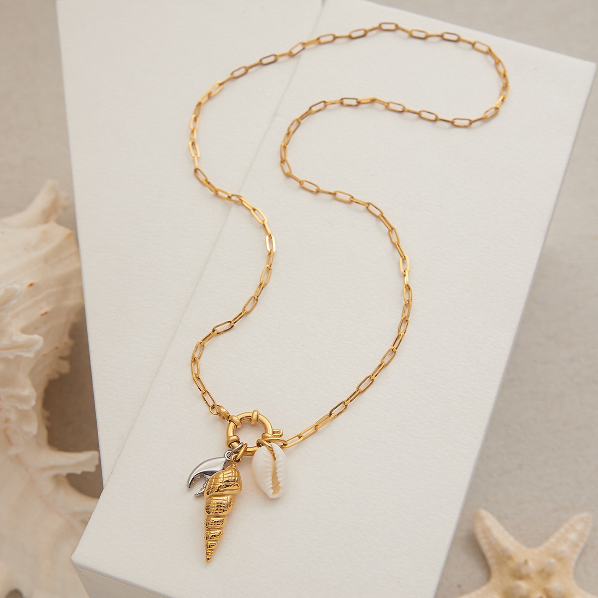 18K Gold-Plated Conch Pendant Necklace – Titanium Steel