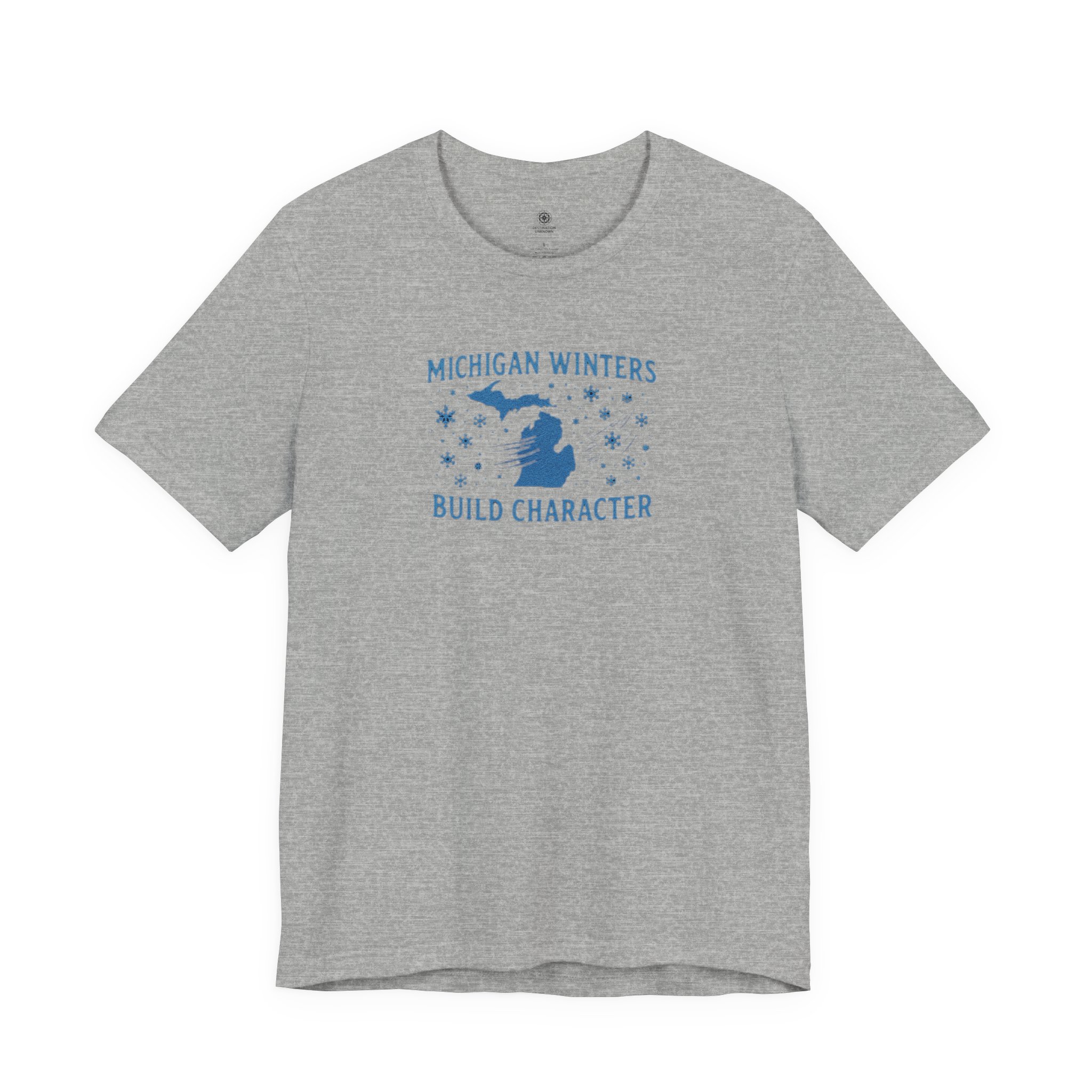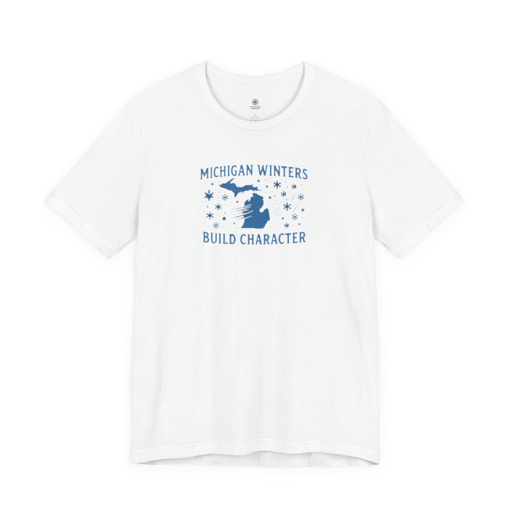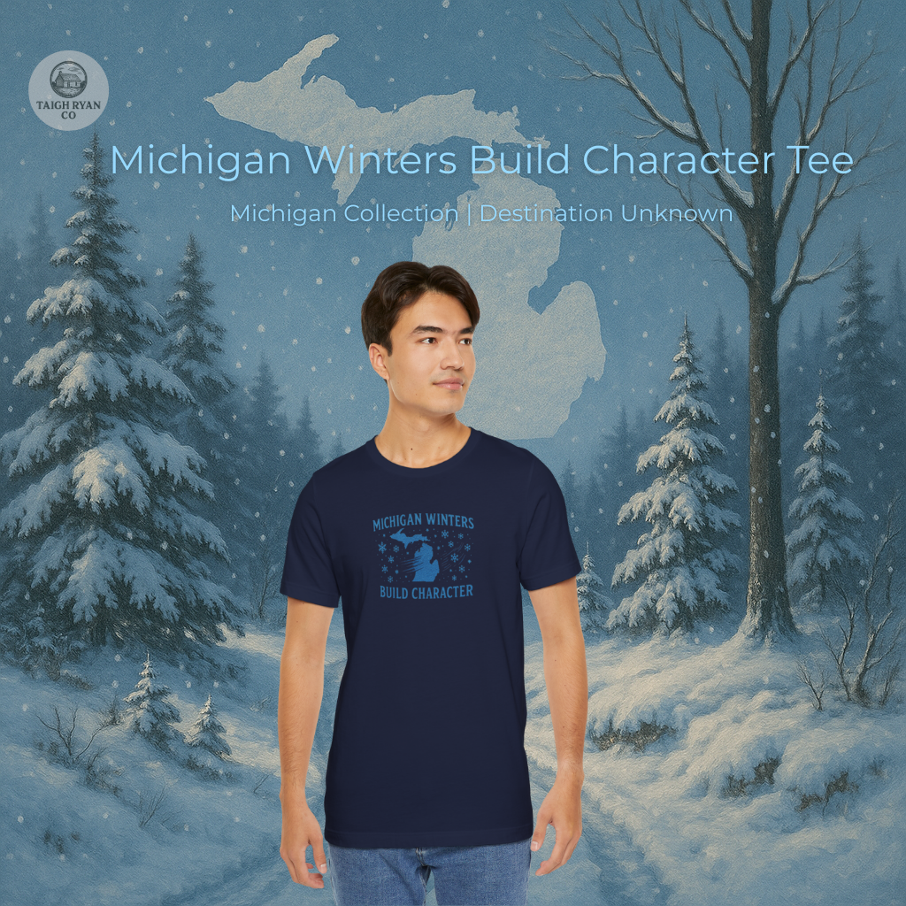 Adventure Inspired Tee – Michigan Winters Build Character – Destination Unknown