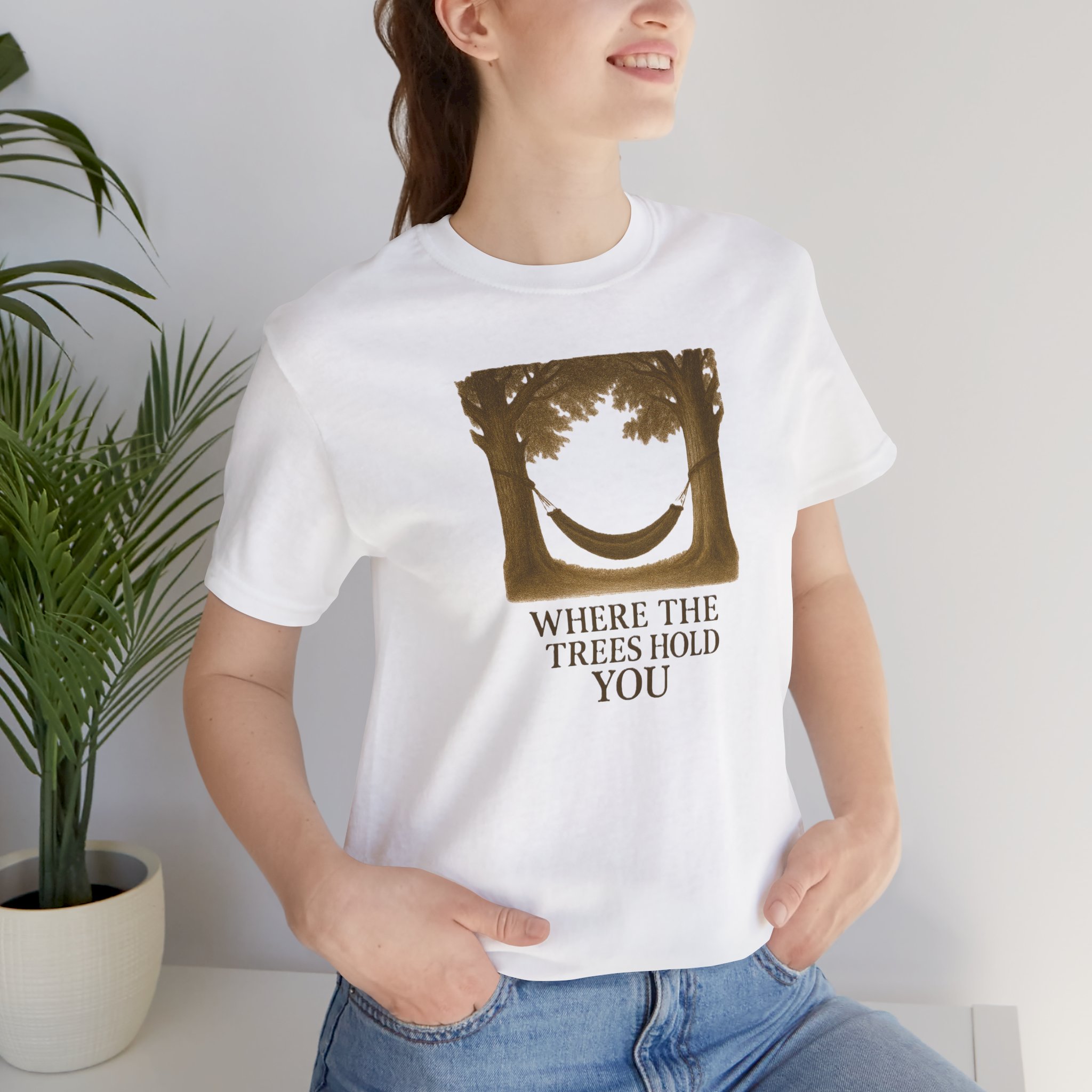 Embrace your adventurous spirit with this Unisex Jersey Short Sleeve Tee. The playful design, featuring the motivational phrases “Where The Trees Hold You” – Tent + marshmallow on a stick graphic.” on the front and “Destination Unknown” on the back, inspires exploration and positivity. This lightweight and breathable tee is perfect for casual outings, weekend trips, or relaxed hangouts with friends.