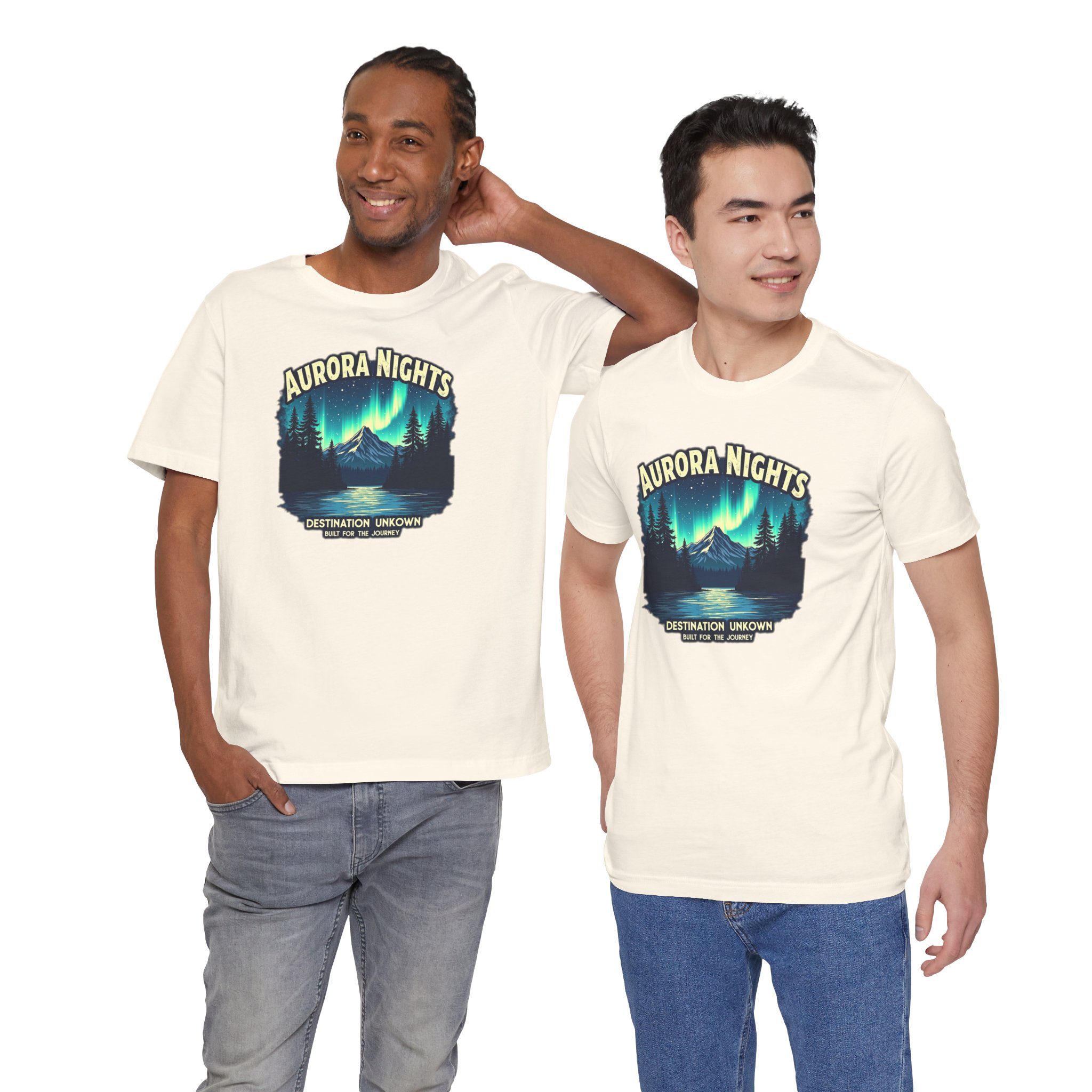 - This breathable and soft cotton tee is perfect for travelers, dreamers, and stargazers. Its relaxed fit and timeless design make it easy to pair with jeans, shorts, or leggings — a versatile piece for every journey. Built for comfort and inspired by the magic of the aurora.