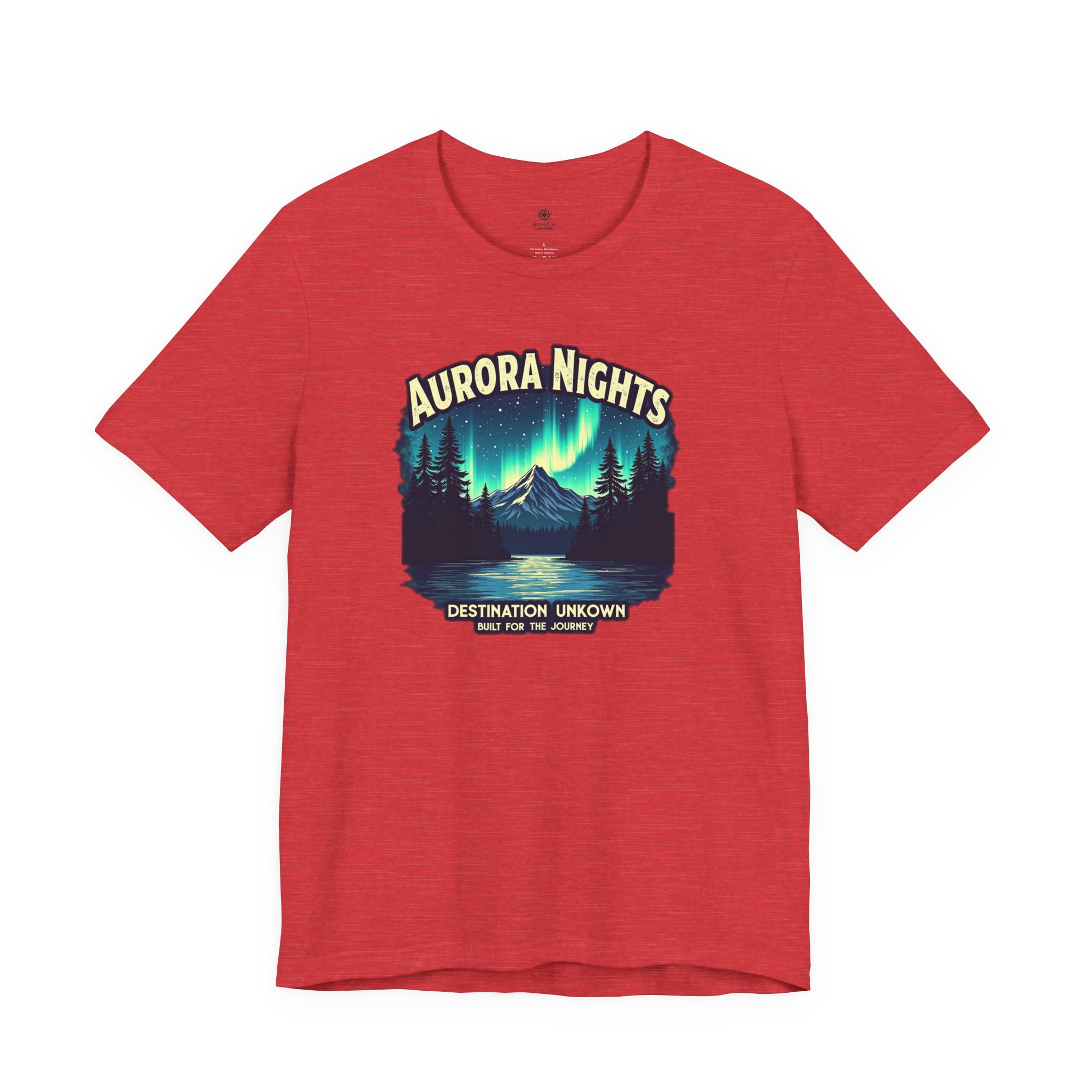 Celebrate starlit skies and nights chasing the unknown with this unisex Aurora Nights t-shirt, featuring a minimalist front design inspired by the Northern Lights and “Destination Unknown” on the back. Whether you’re exploring faraway trails, camping beneath the aurora, or dreaming under open skies, this tee captures the wonder of travel and the spirit of adventure.
