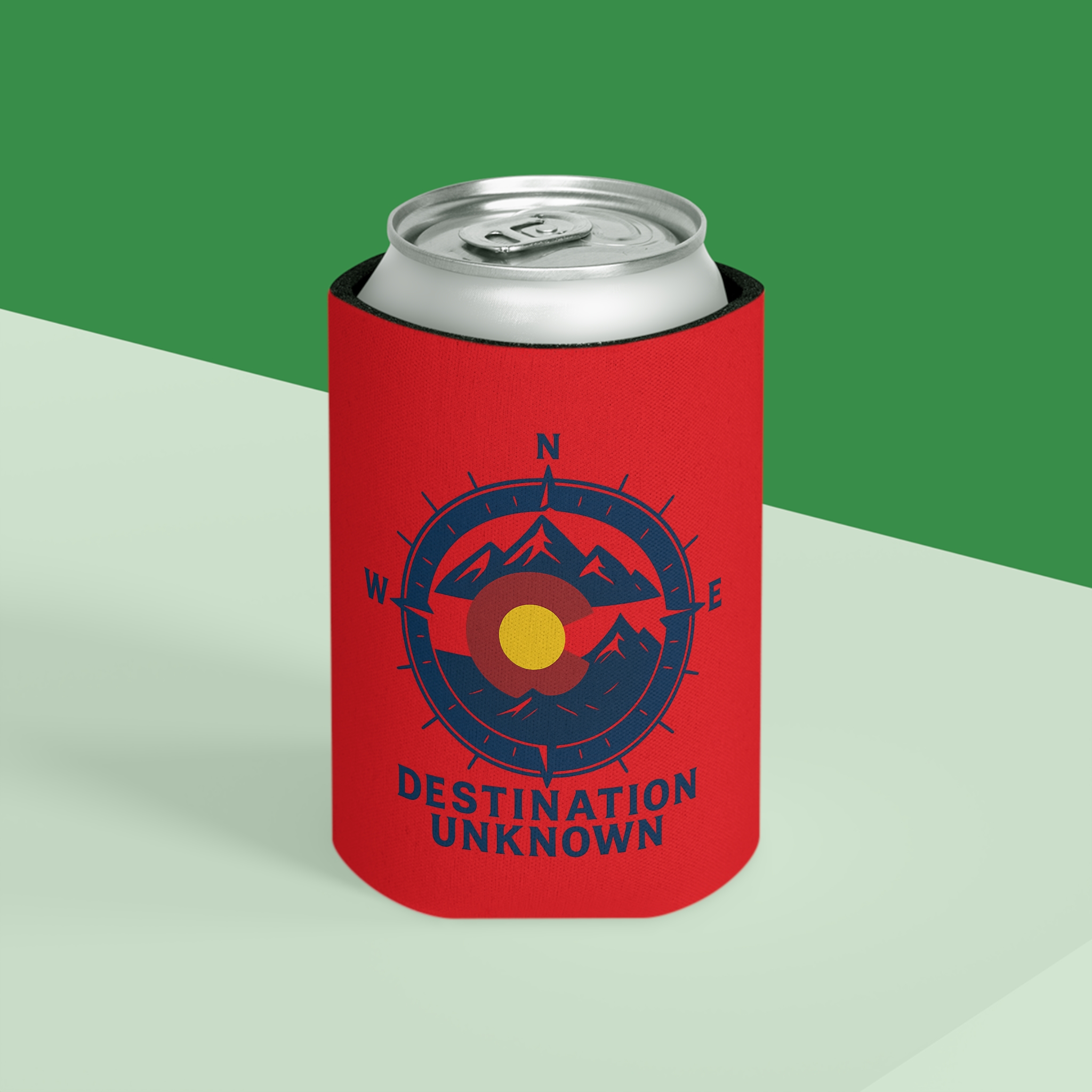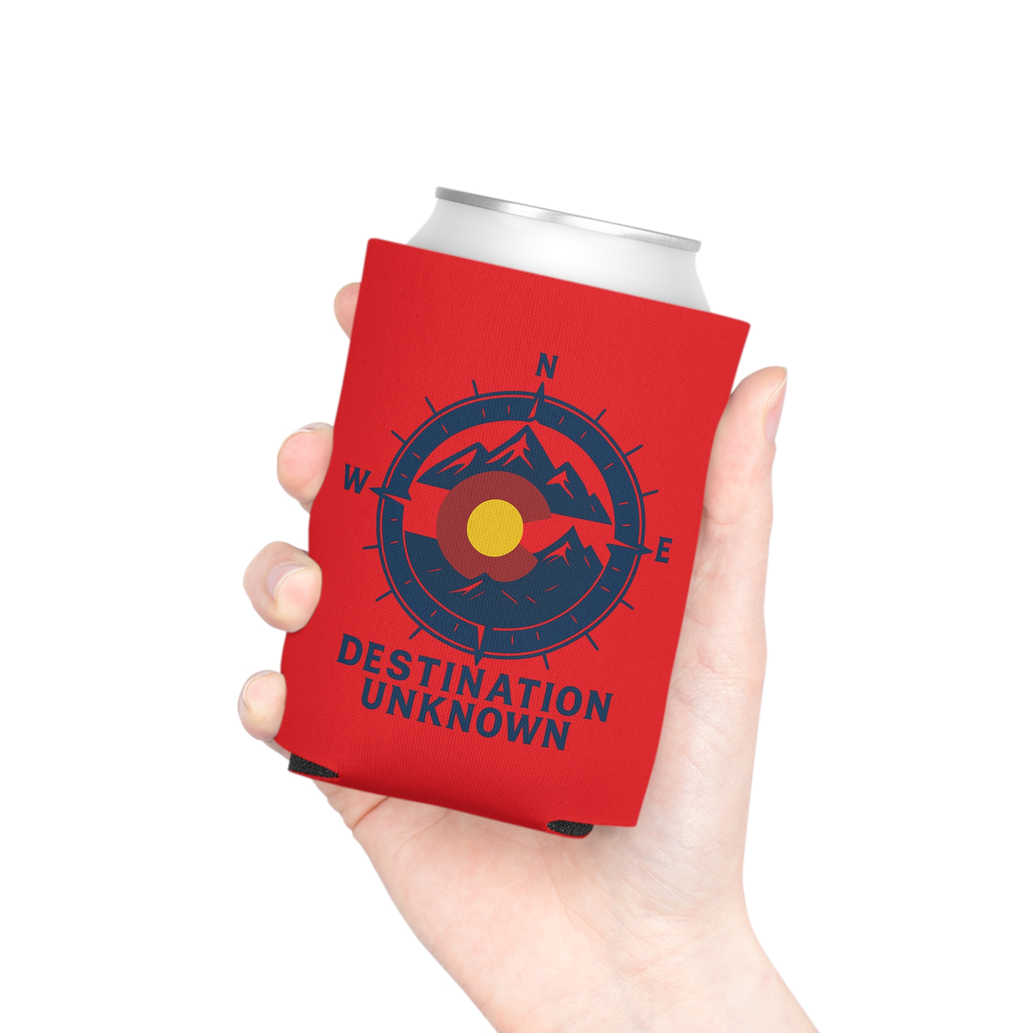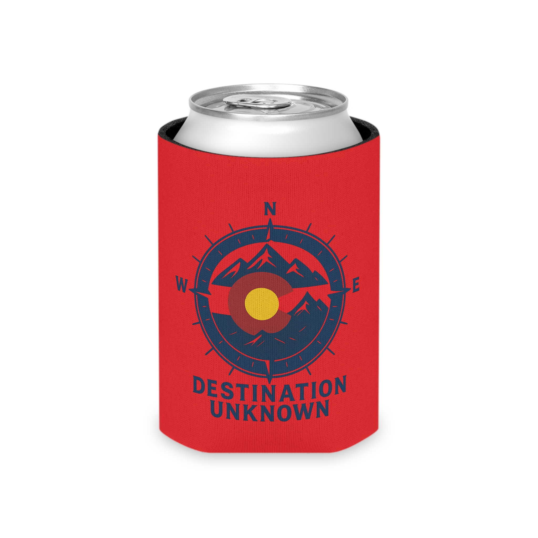 Destination Unknown Can Cooler – Red