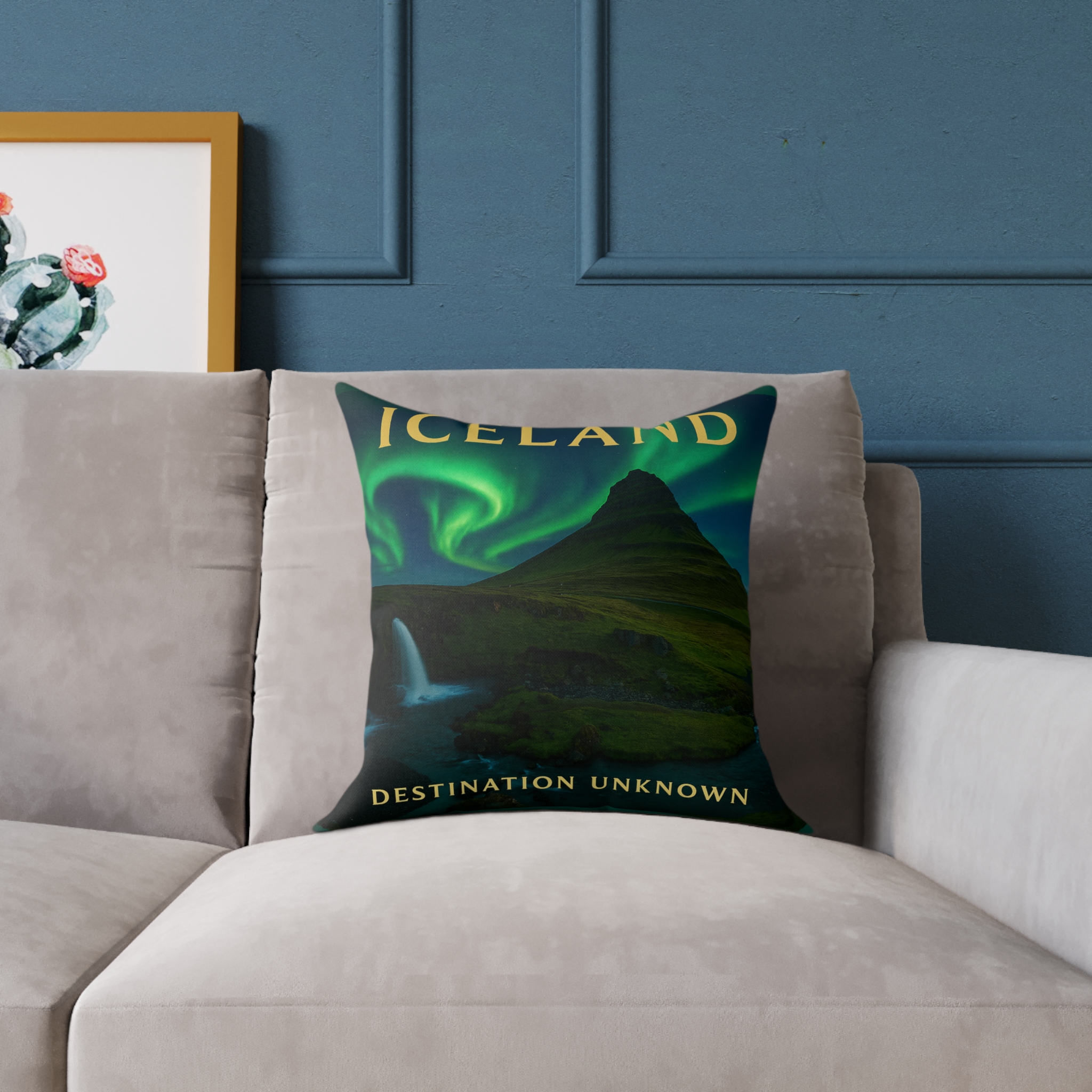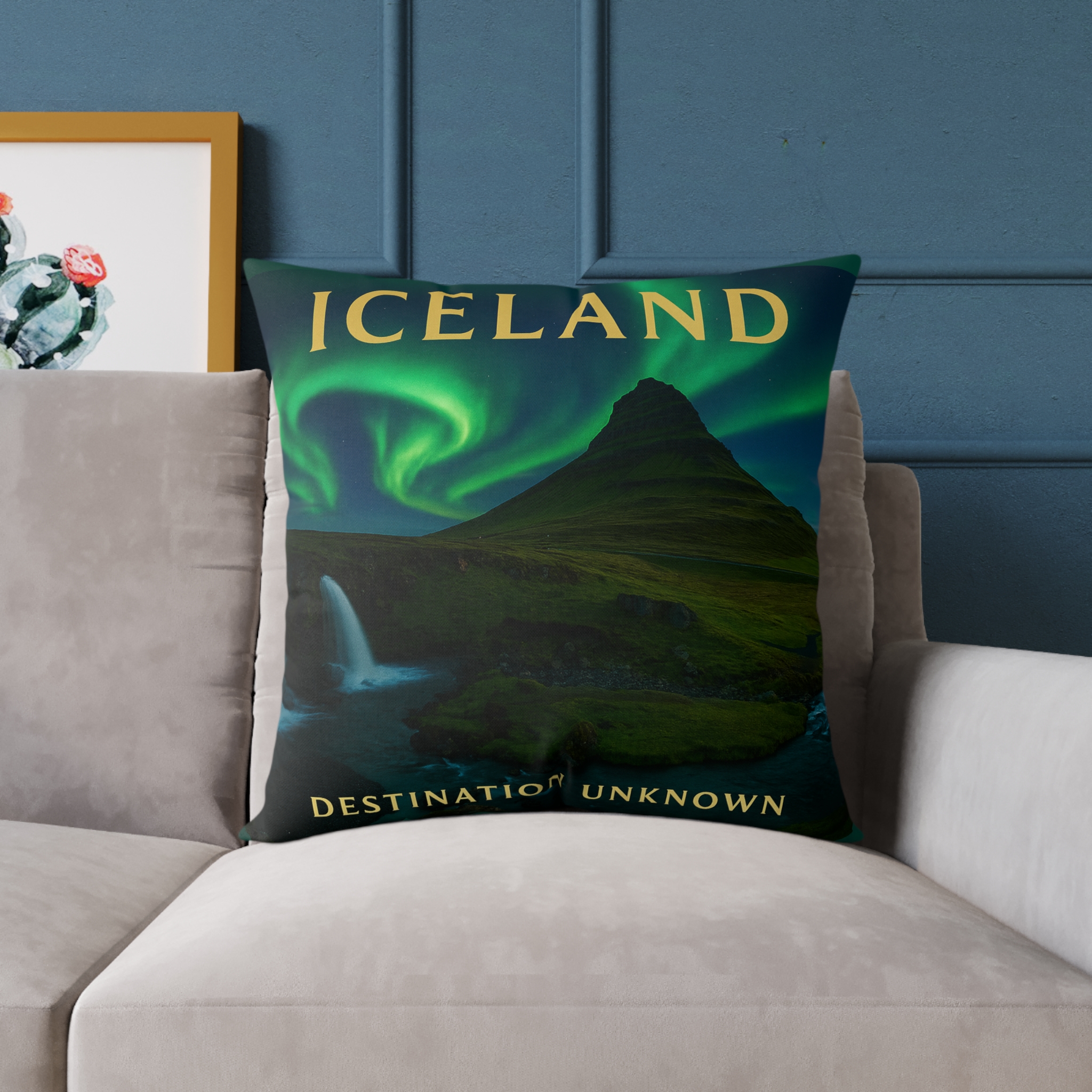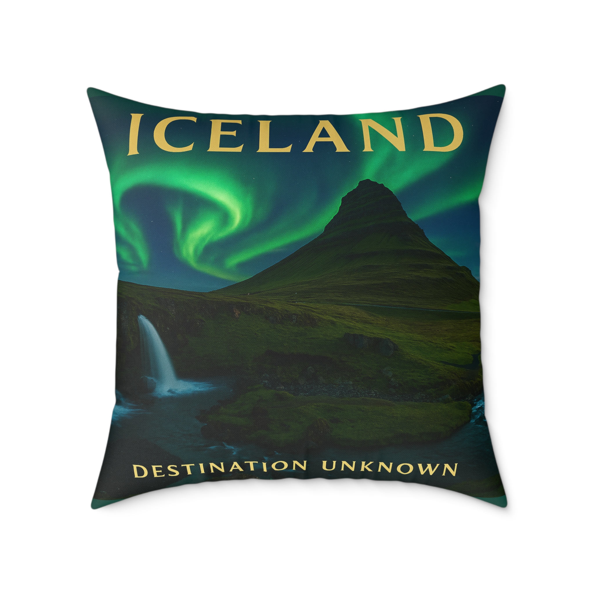 Crafted from a 100% polyester poly canvas cover and soft polyester filling, it’s both durable and cozy — perfect for adding a travel-inspired accent to your living room, reading nook, or cabin getaway. Its vivid, fade-resistant design captures Iceland’s serene beauty, making it an ideal gift for explorers and dreamers alike.