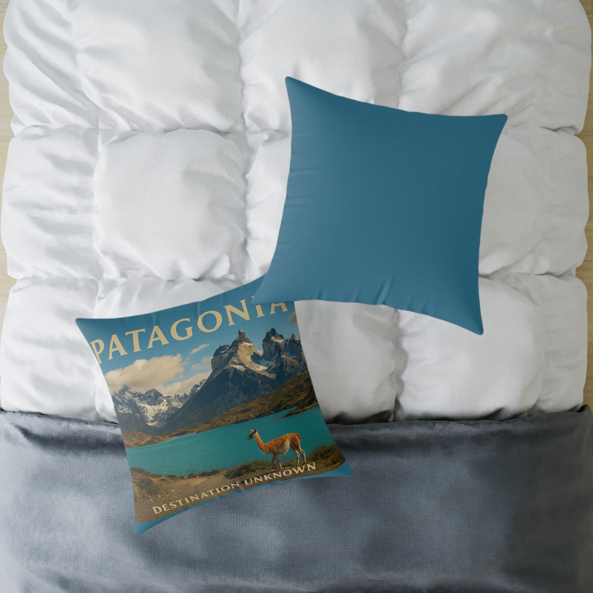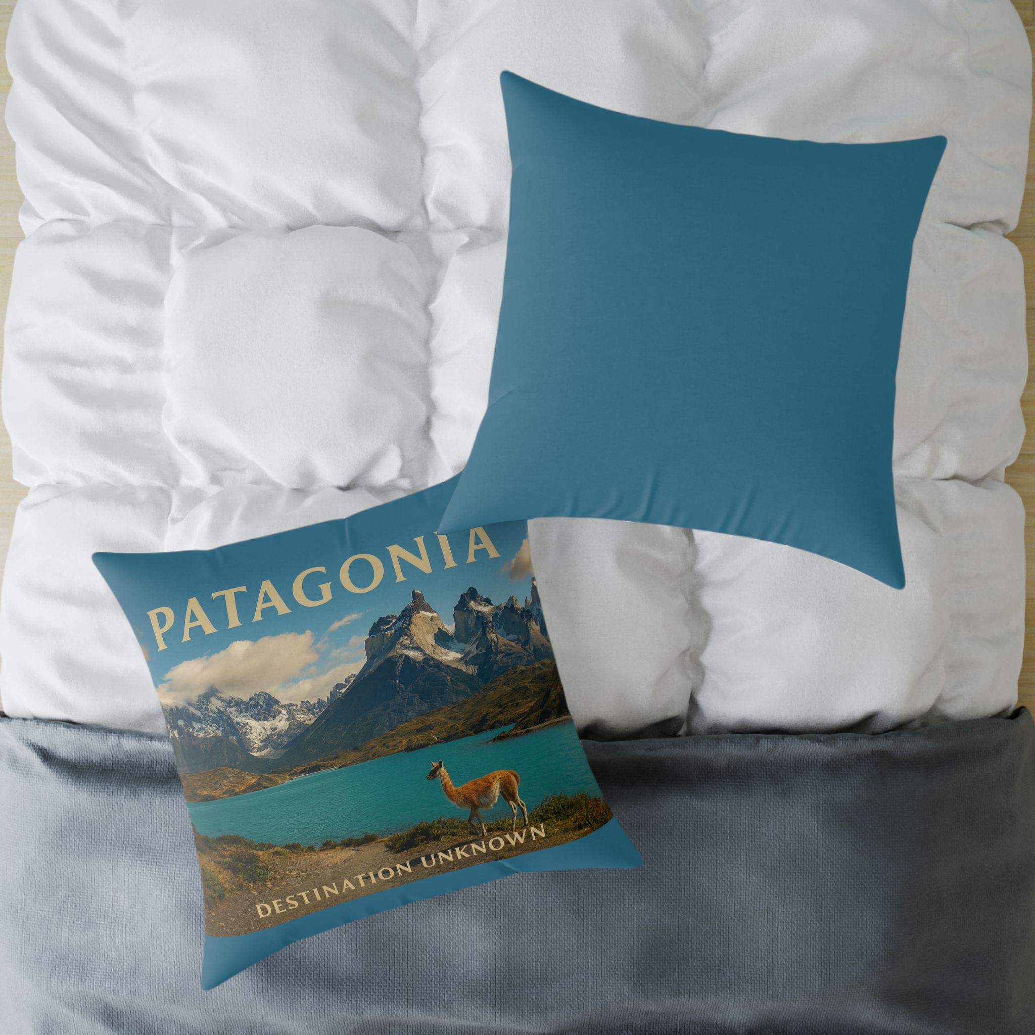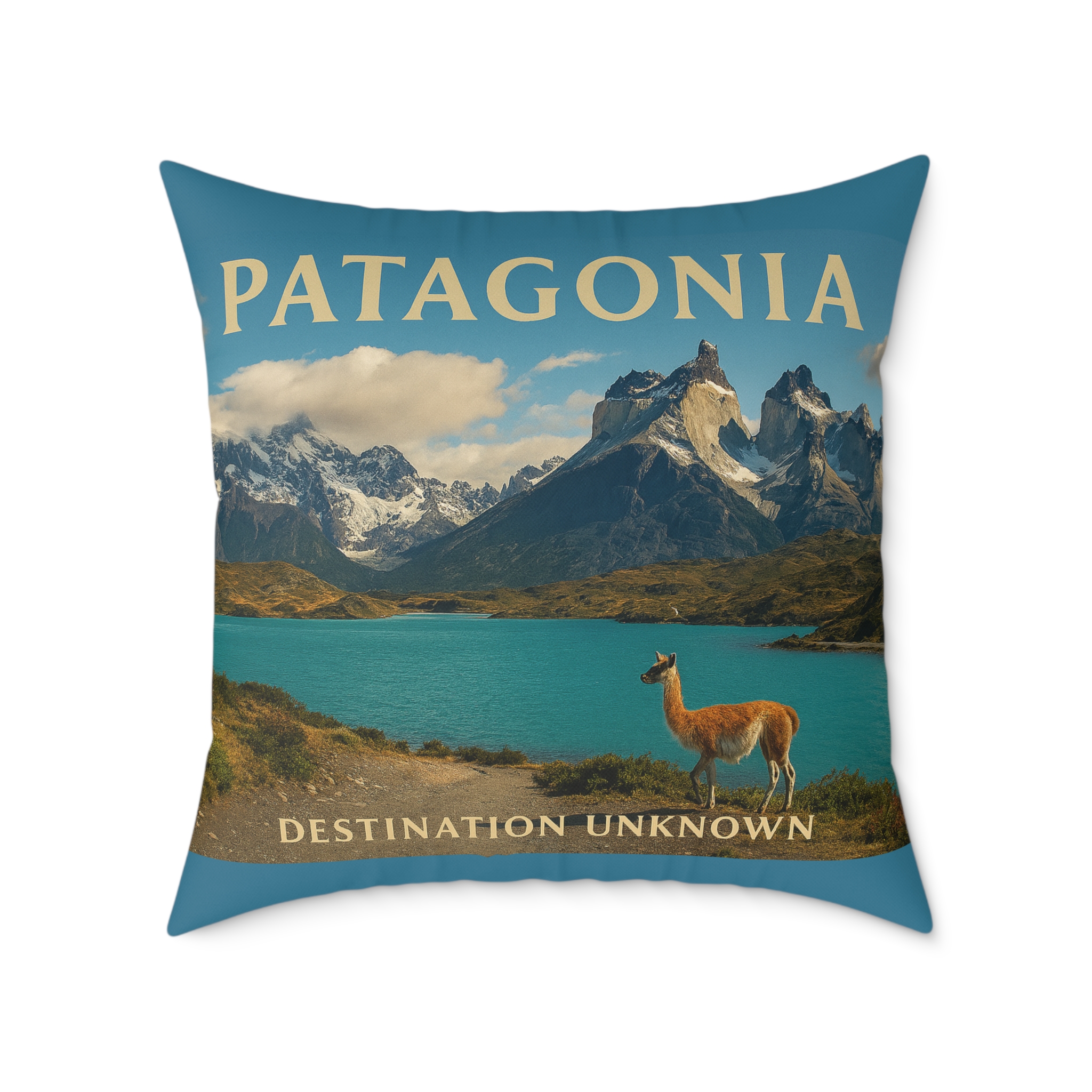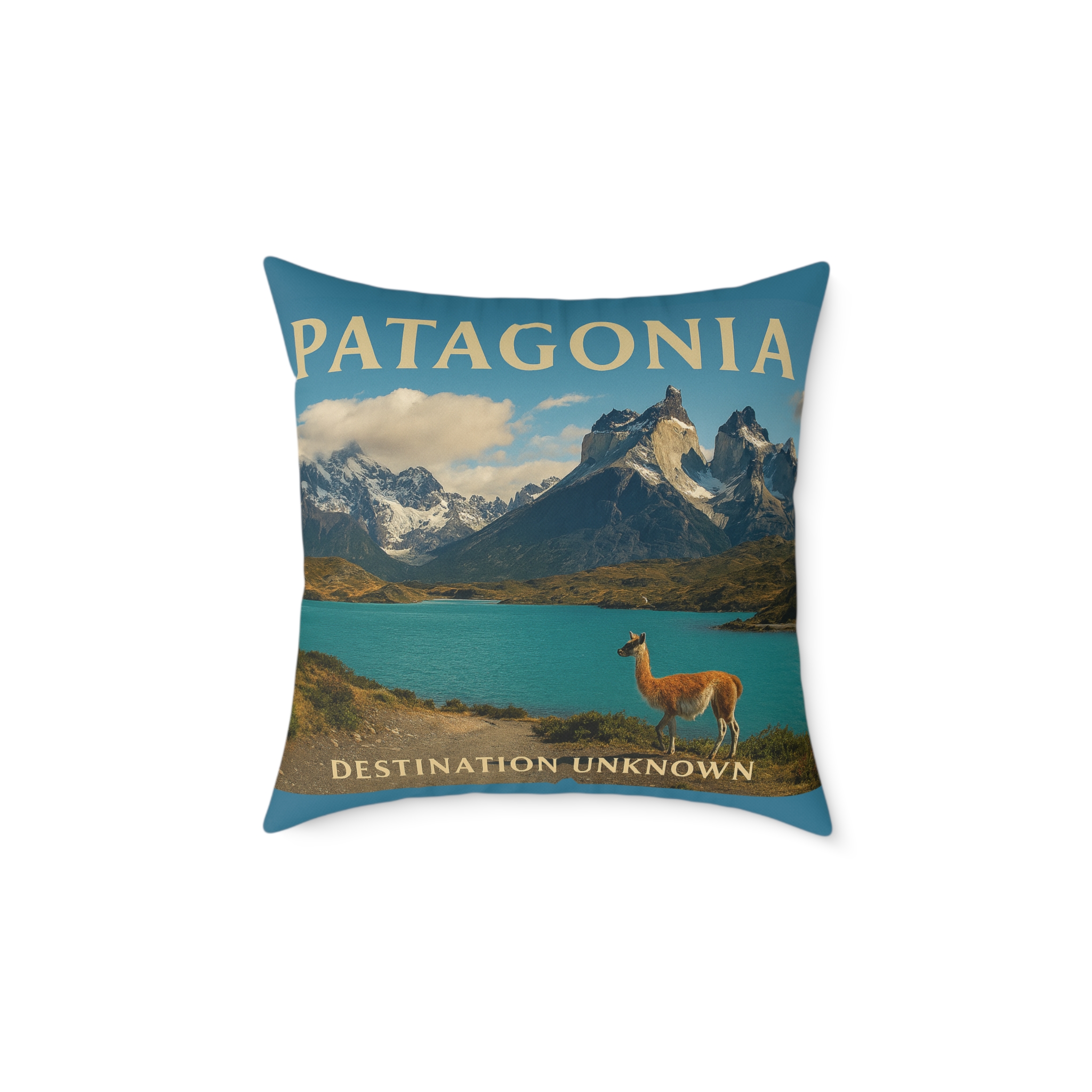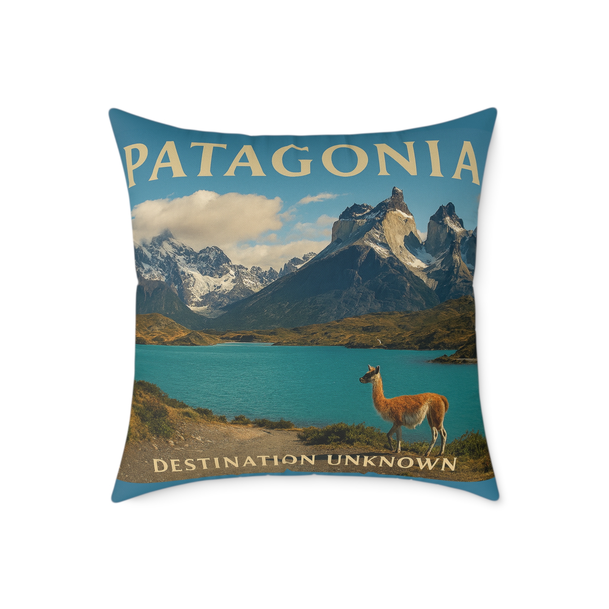 Channel the rugged beauty of the wild south with the Patagonia Wanderlust Square Poly Canvas Pillow — part of Taigh Ryan Co’s “Built for the Journey” Collection. Inspired by the towering peaks, glacial lakes, and vast open skies of Patagonia, this pillow brings the essence of adventure and tranquility into your living space.